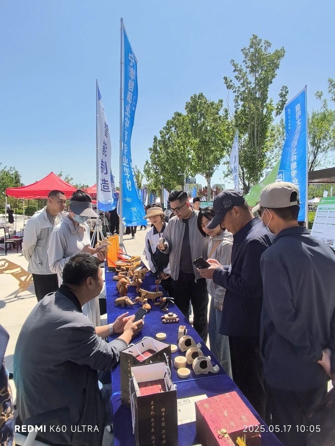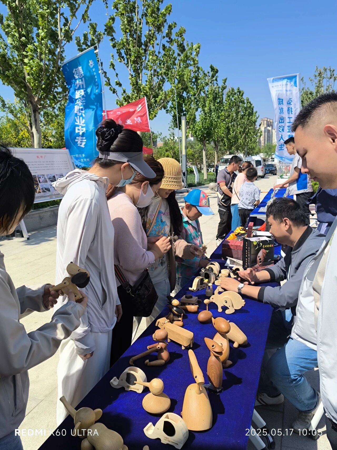 展区现场,我校木业产品加工技术专业师生带来了榫卯家具和精致的木制产品,可爱的动物形象和精致的雕刻工艺无不体现着传统木艺与现代设计的碰撞,市民还亲手体验传统榫卯结构的精妙。
